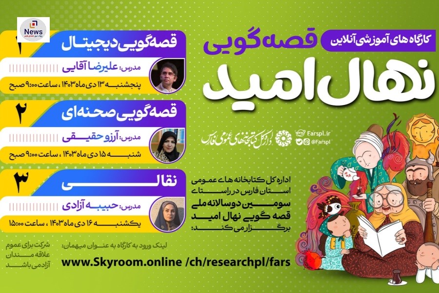 اداره کل کتابخانه های عمومی استان فارس در راستای سومین دوسالانه ملی قصه گویی نهال امید، کارگاه های آموزشی آنلاین قصه گویی را برگزار می کند.